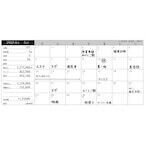 ・カレンダー表面にはその月の客数と売上。出費、経費と支払い。週売上計と前年週売上計。発注買い物リスト、MEMOを書く欄あり